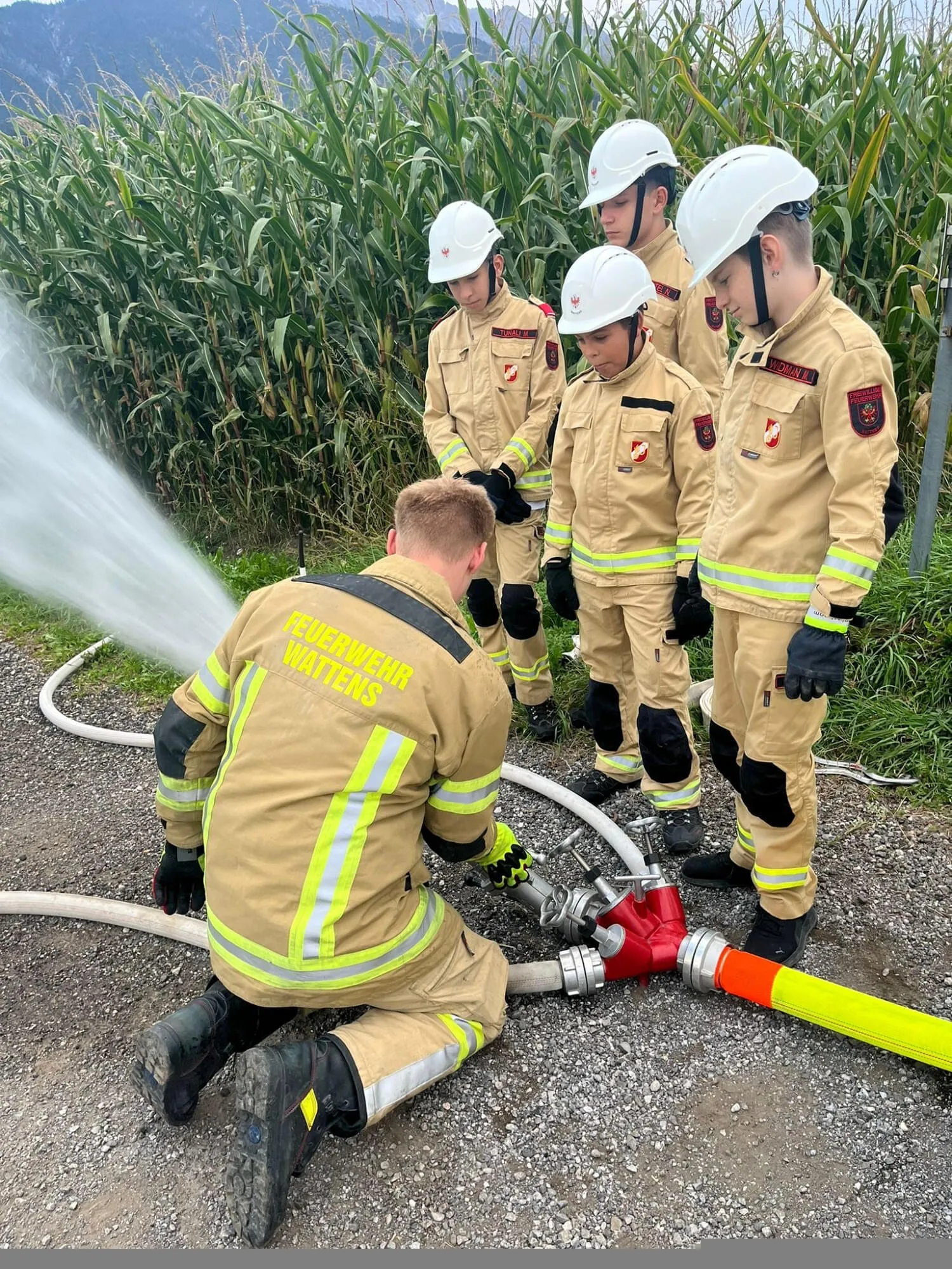 Wir fingen mit einer Gerätekunde an, um den Jugendlichen die Geräte und deren Position im Fahrzeug zu zeigen. Die Jugendlichen beübten auch den korrekten Umgang mit den wasserführenden Armaturen, weiters frischten wir noch unser Wissen beim Absichern und Absichern der Unfallstelle auf.